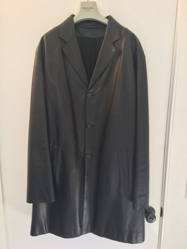 Prada Mens Genuine Black Leather Coat Size 52 Ebay